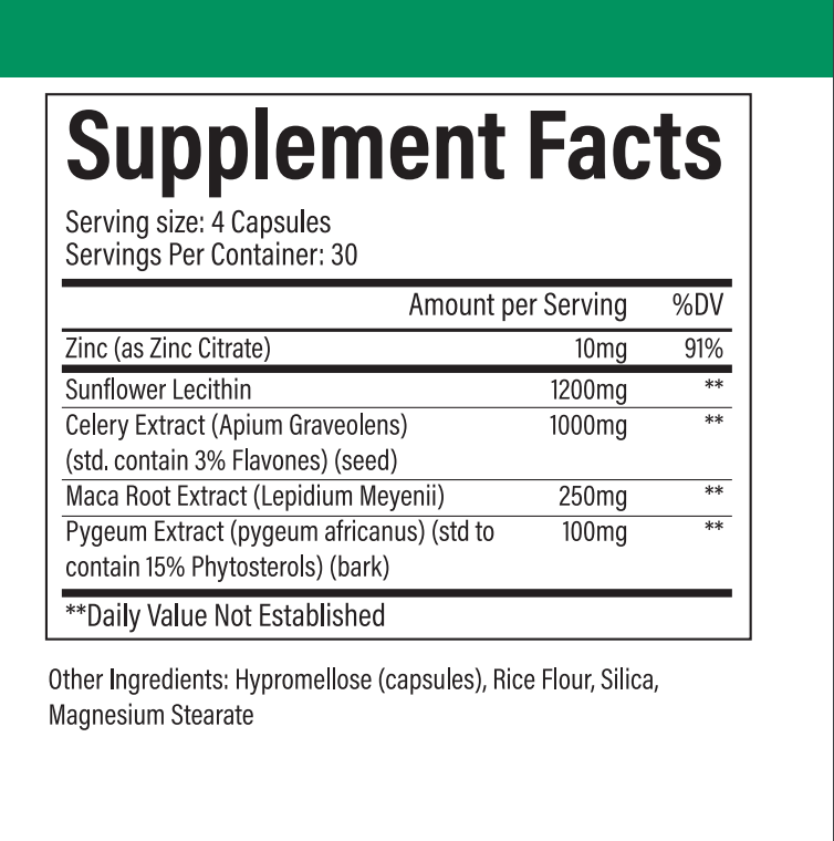 | Pygeum Extract (pygeum africanum) (Std. to contain 15% Phytosterols) (bark) | 100 mg | ** |